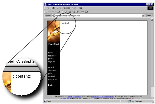 fields tell FreeFind where to insert the page contents. This enables you to create a